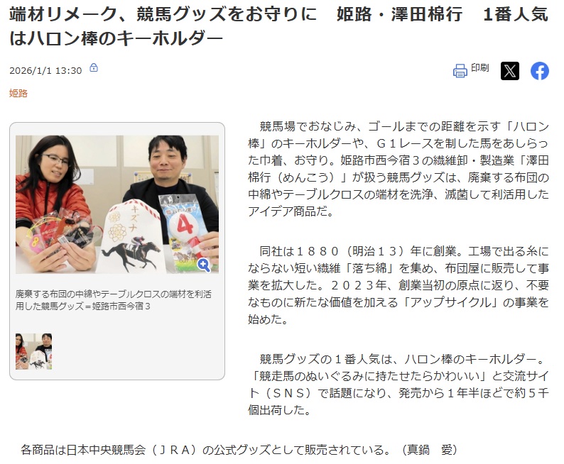 2026年は午年、うまにちなんで当社の取り組みを神戸新聞社様に取材頂き新年の記事にして頂きました。